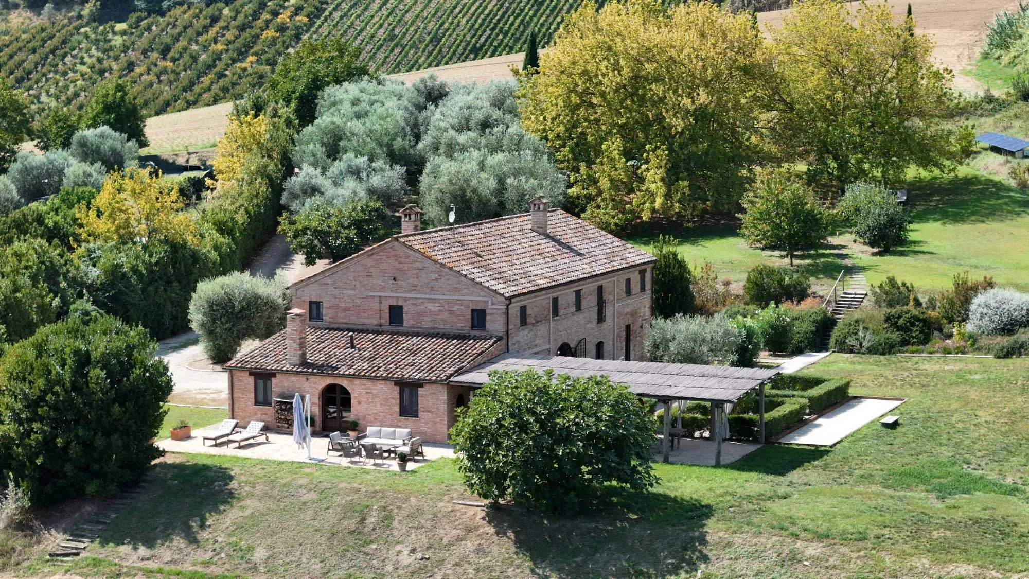 Stroll through the five acres of landscaped grounds and discover a delightful variety of flowers and trees. Fragrant lavender and rosemary are ever-present, while fig, quince, persimmon, crabapple, and olive trees abound. Enjoy the elegant symmetry of the English garden just outside the house, or enjoy a friendly game on the boccia ball court.