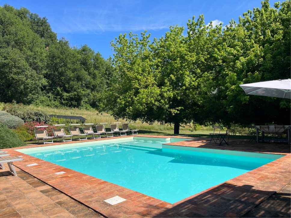 Cool off in the spacious pool, complete with built-in seating and stunning views of the gardens. Unwind on one of the ten chaise loungers while soaking up the sun, or relax in the shaded comfort of the sun deck. A dedicated Wi-Fi system reaches the pool area, so you can stay connected while enjoying the outdoors.